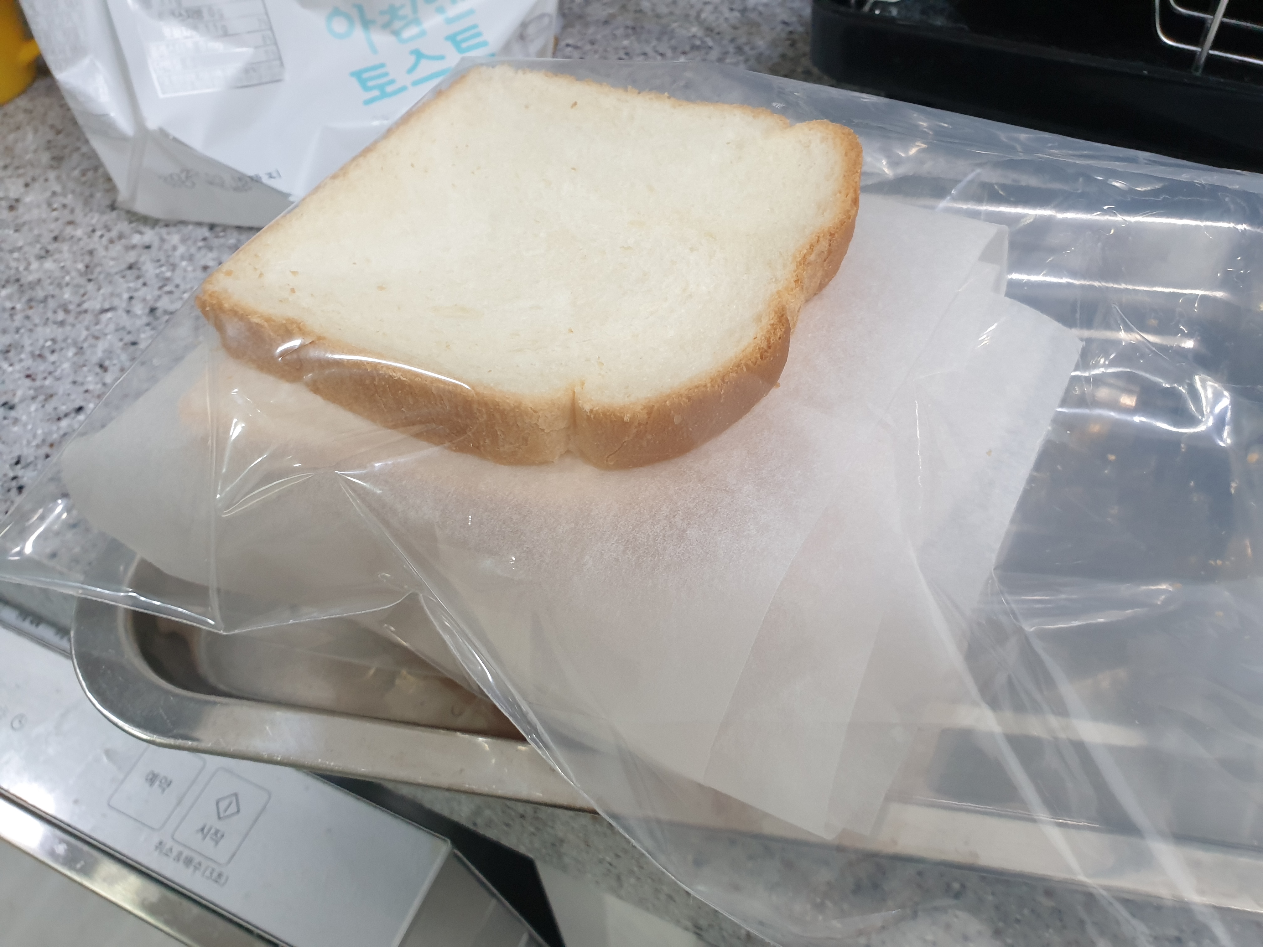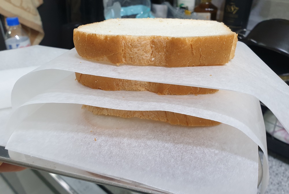 식빵 한장, 유산지 한장으로 번갈아가면서 세팅해주세요