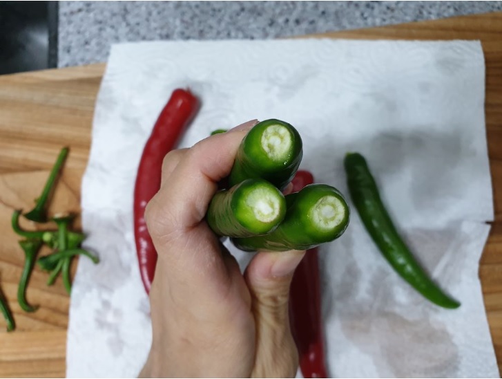 고추의 꼭지도 똑 따서 제거해주세요