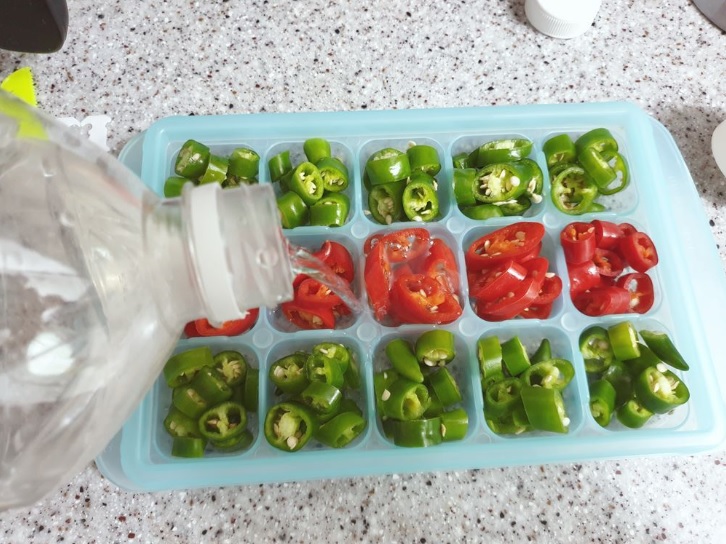 고추는 썰어서 밀폐용기에 담아 냉동보관해주세요