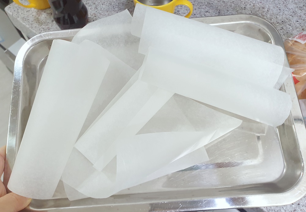 유산지는 식빵 크기만하게 잘라서 준비해주세요