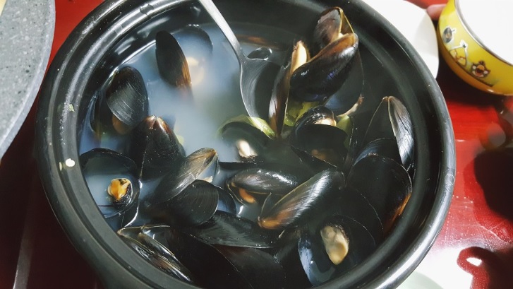 저는 홍합탕과 함께 고기도 구워서 같이 먹었어요