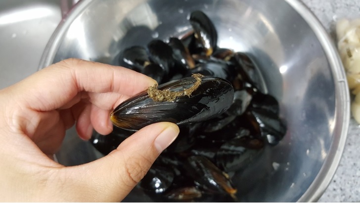 홍합은 수염을 먼저 잘라주어야 하는데요