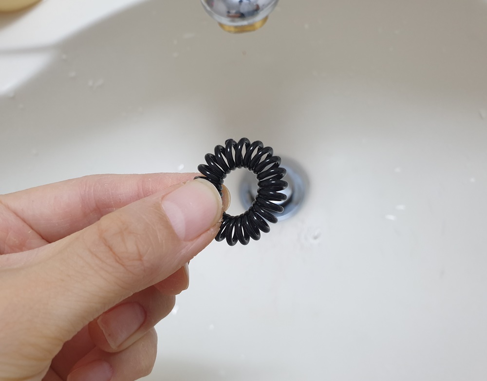돌아다니는 스프링 머리끈 하나 집어서 세면대에 탁! 끼워보세요~