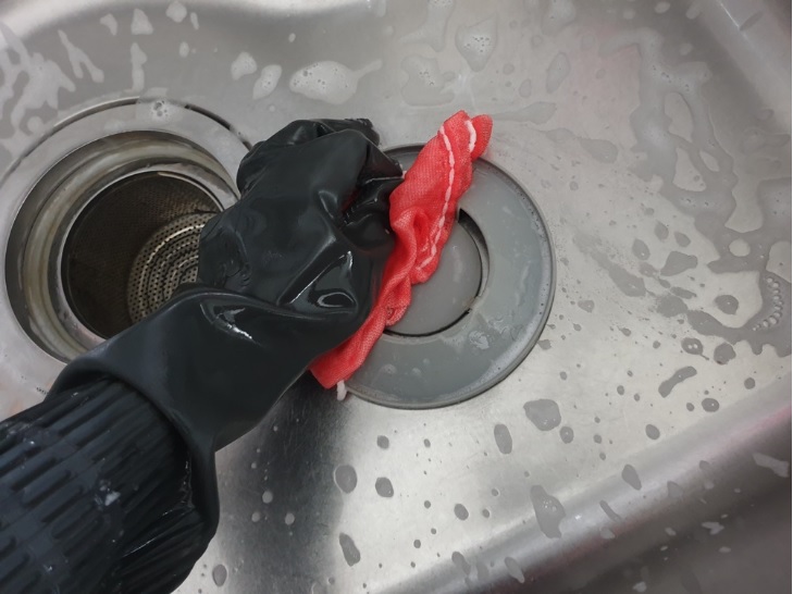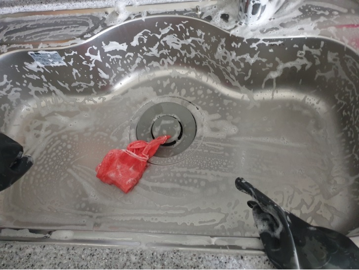 싱크볼 전체적으로 거품을 내서 청소를 마쳤다면