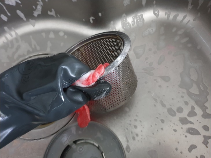 배수망과 마지막으로 배수구까지 깨끗하게 닦아주세요~