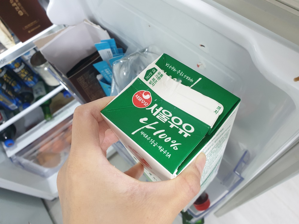 작은 사이즈를 사서 쟁여놓기도 하지만 큰 사이즈의 우유를 개봉하면