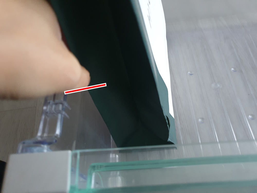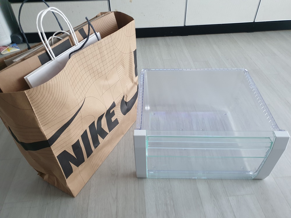 적당한 사이즈의 쇼핑백을 골라서 역시 야채칸 높이에 맞게 치수를 재줍니다