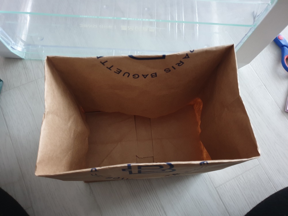 야채칸 높이에 맞게 쇼핑백에 표시해두었다면 저처럼 한번 접어주세요
