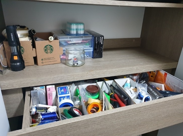 어질러져 있던 잡동사니 서랍이 커피캐리어 하나로 이렇게 말끔하게 정리가 되지요