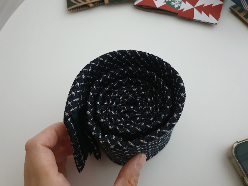 넥타이는 주름이 잘 생기지 않으니 이렇게 돌돌 말아서 컵홀더에 끼워만 주면 정리 끝!