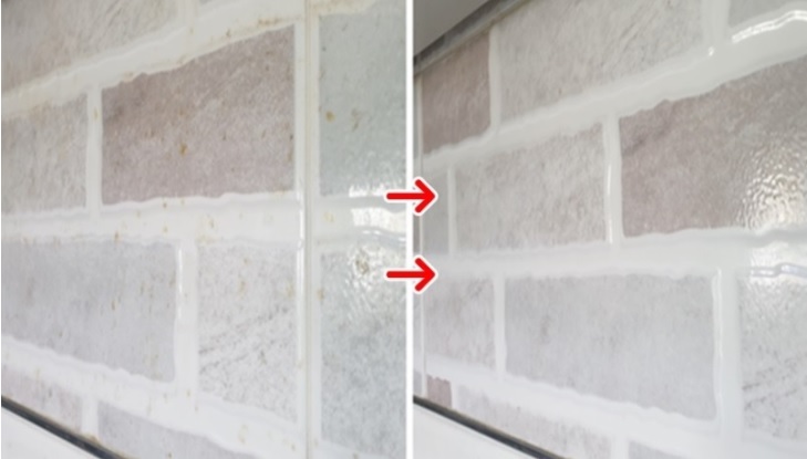 가스레인지 근처 타일엔 기름이 튀어서 금방 노란 기름자국이 생기는데요