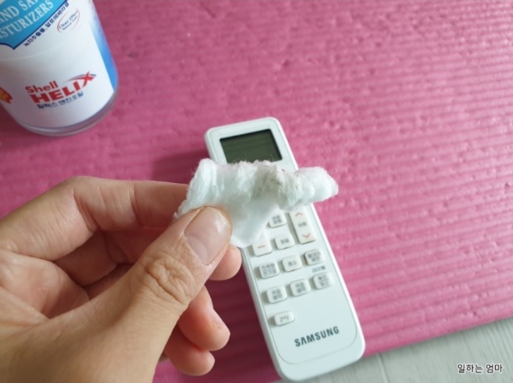 화장솜에 손소독제를 묻혀서 쓱쓱 닦아줍니다