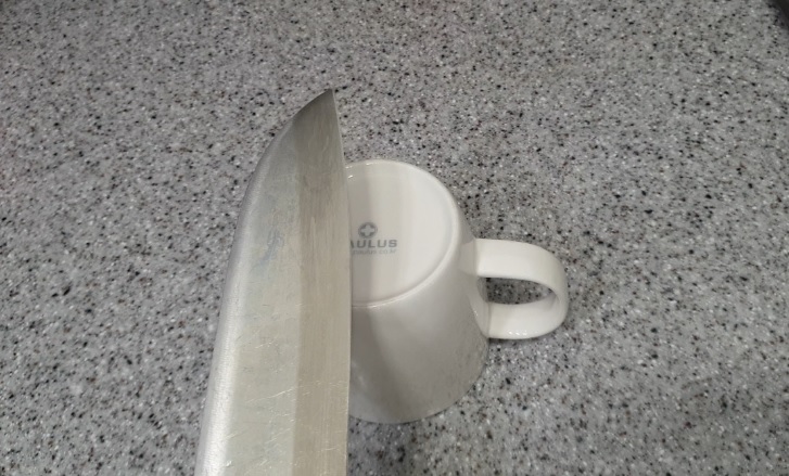 머그컵을 뒤집어 준 뒤 밑부분에 칼날을 대고
