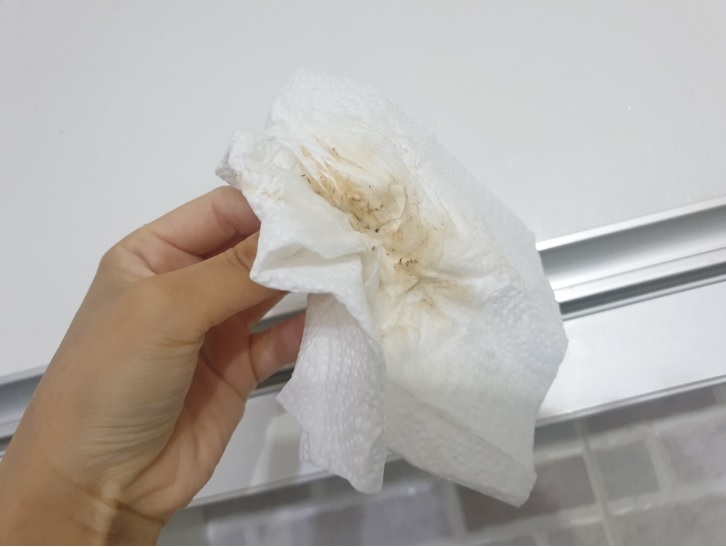 키친타월을 제거해 보니 곰팡이들이 싹 사라졌어요