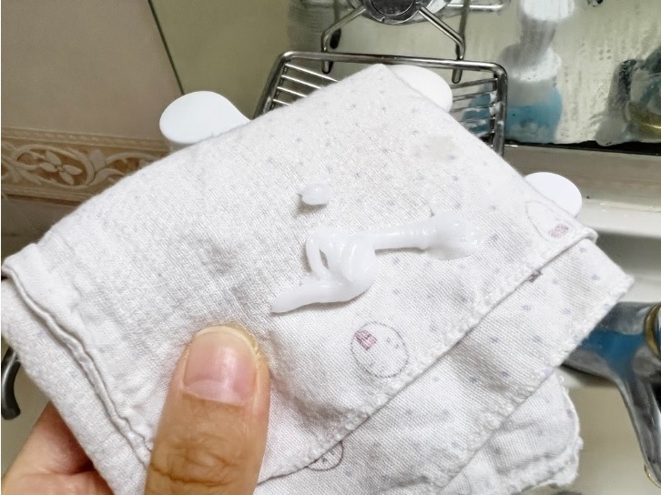 마른천에 린스를 흠뻑 짜주어 욕실거울을 문질러줍니다
