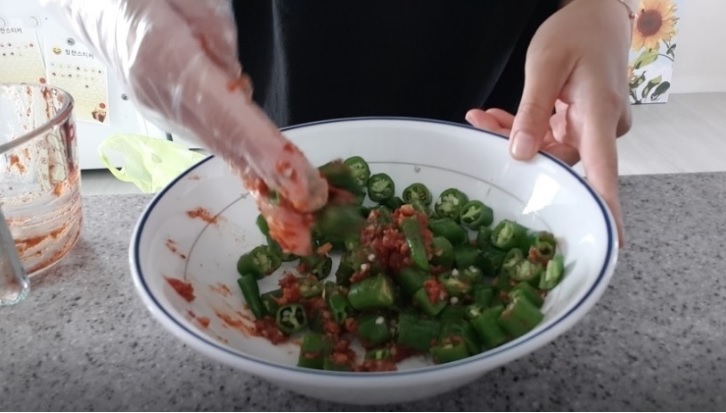 썰어둔 오이맛고추에 양념장 넣고 잘 버무려 주면 끝!!