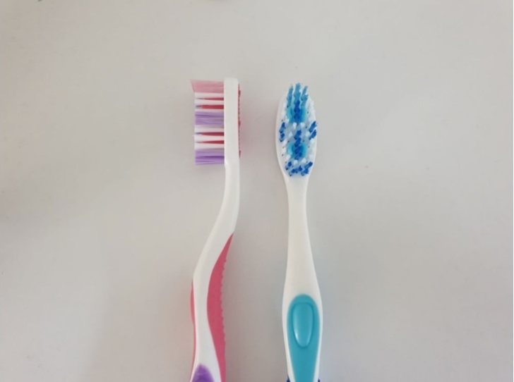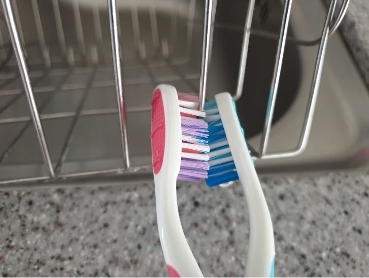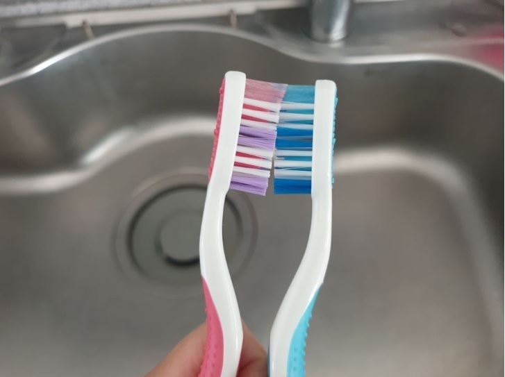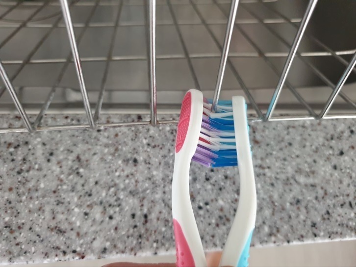 그럼 칫솔이 이렇게 서로 마주 보는 상태가 되지요.