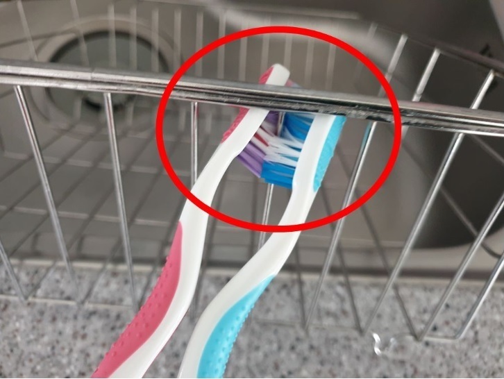 바로 식기건조대 물때를 제거할 때 칫솔을 사용하고 있어요