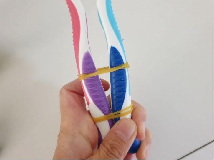 칫솔 손잡이 부분을 고무줄로 묶어주세요