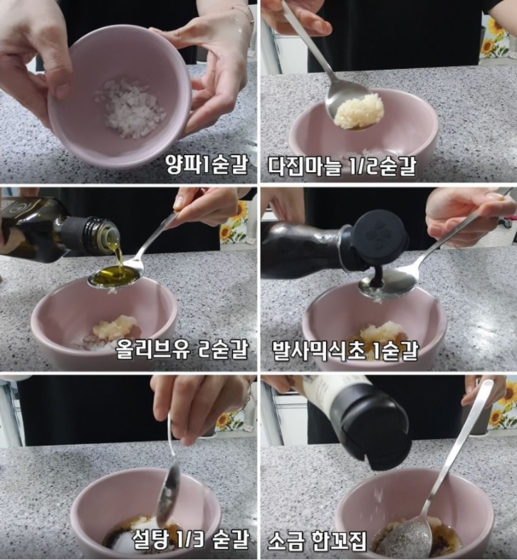 올리브유 2 숟갈, 발사믹식초 1 숟갈,