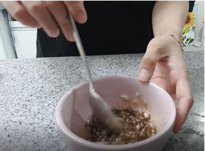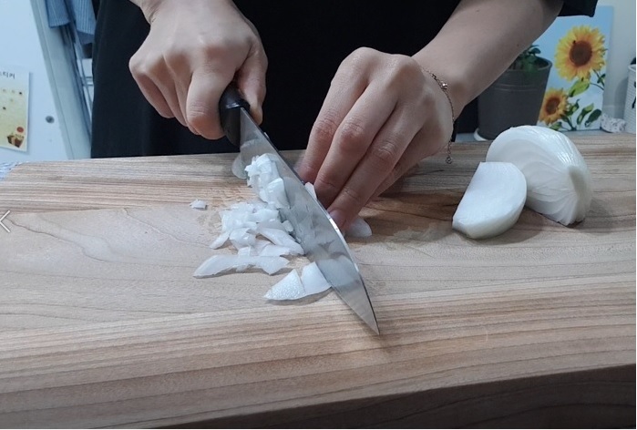 저는 양을 적게 할 거라 양파 1 숟갈 분량만 다져서 준비했어요