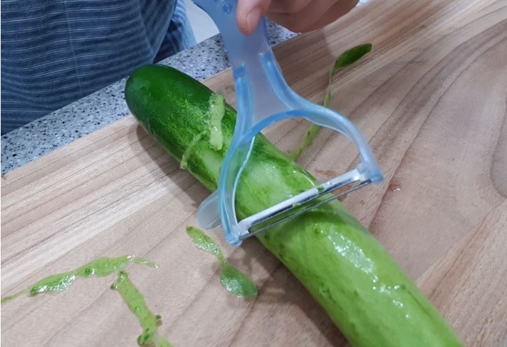 필러 사용 안 하시면 칼로 최대한 얇게 오이를 썰어주세요