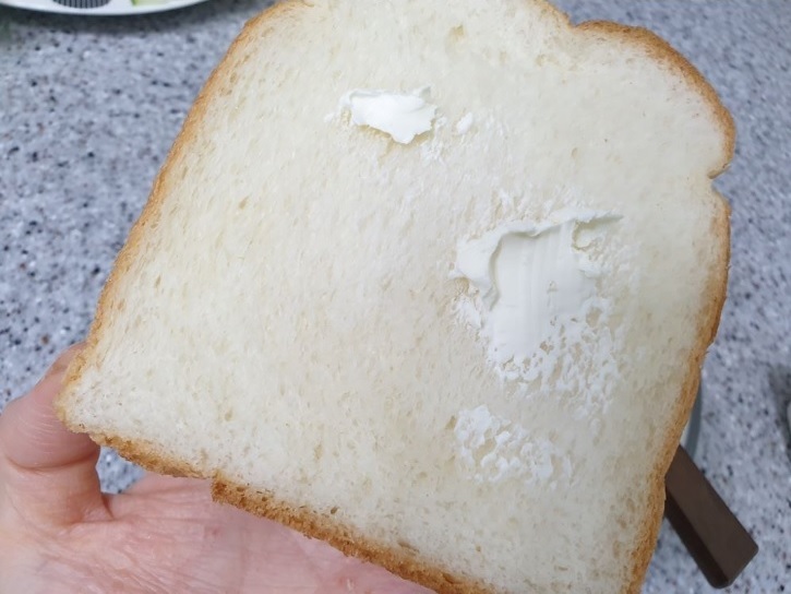 식빵에 크림치즈를 골고루 펴 발라줍니다