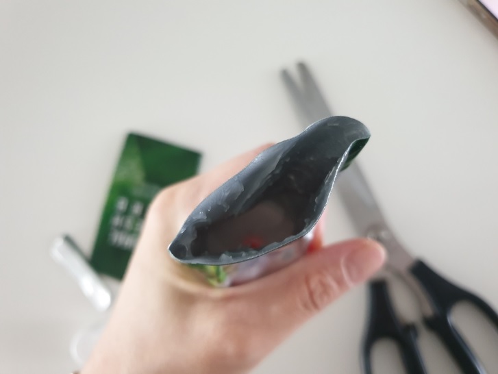 그리고 다음은 다 쓴 치약을 가위로 잘라줍니다