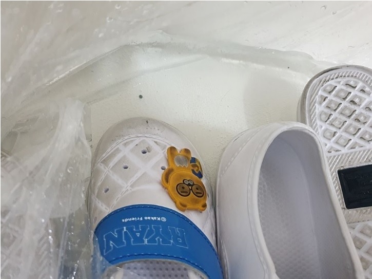 운동화나 실내화를 넣고 30분 정도 때를 불려주세요