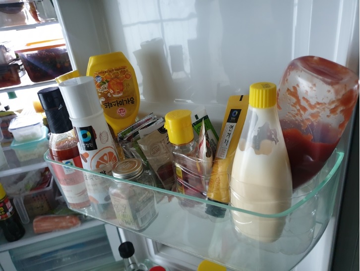 여기에 팩에 들어 있는 배달소스, 양념장들 정리해 주세요