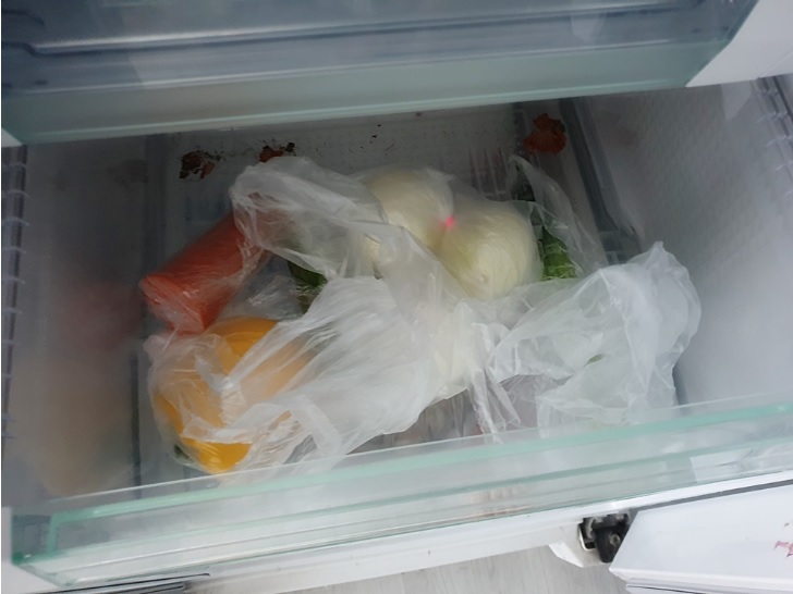 야채칸 정리에 딱 맞는 건 역시 쇼핑백이지요!!