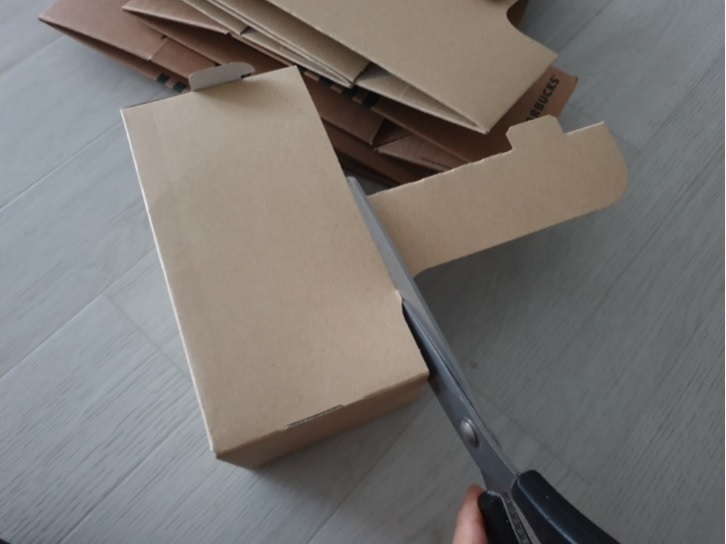 먼저 커피캐리어의 손잡이를 가위로 잘라주세요