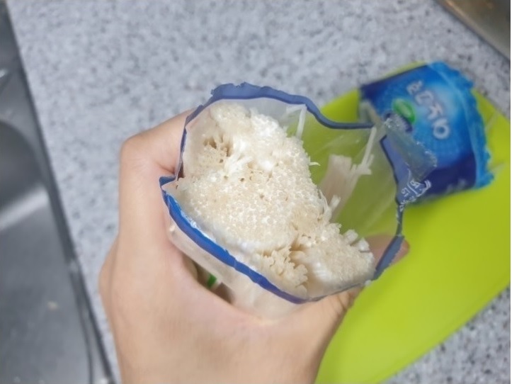 그래서 봉지에서 팽이버섯을 꺼내지 않고