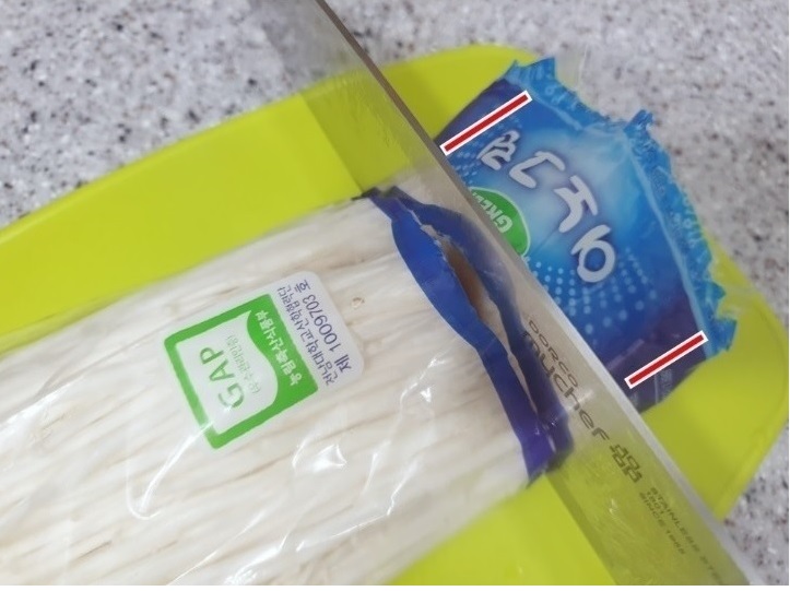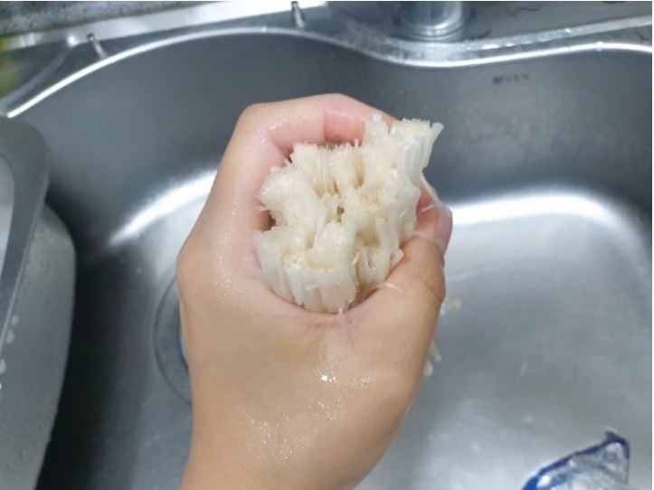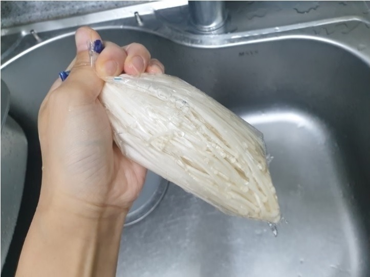 여기에서 보통 팽이버섯을 굳이 꺼내서 세척을 해주게 되는데요