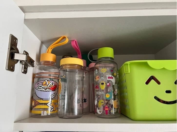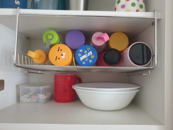 이럴 땐 다이소에서 파는 선반 하나 끼워서 물통을 정리해 보세요