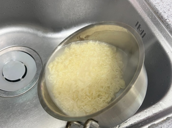 보통 채반을 가져와서 거기에 국수를 옮겨서 물을 빼잖아요