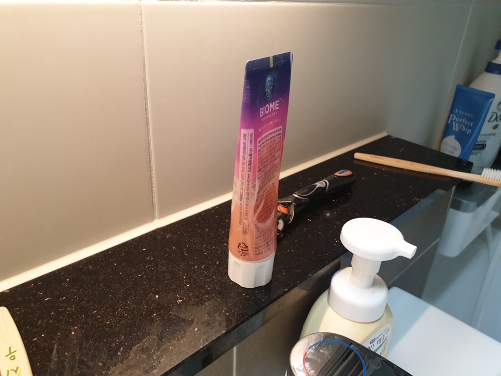 칫솔, 치약, 면도기, 손세정제 등을 올려두기에 너무