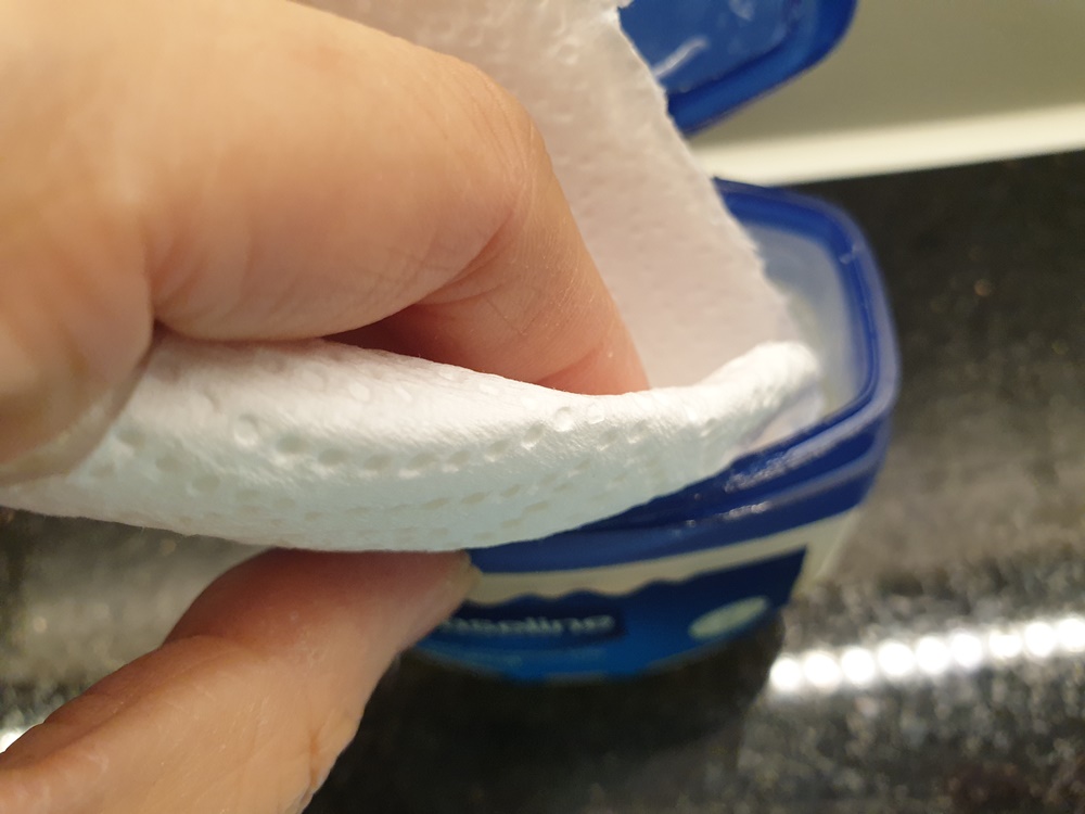 마른 천에 바세린을 발라서 슬슬 문질러 주기만 하면 끝이에요