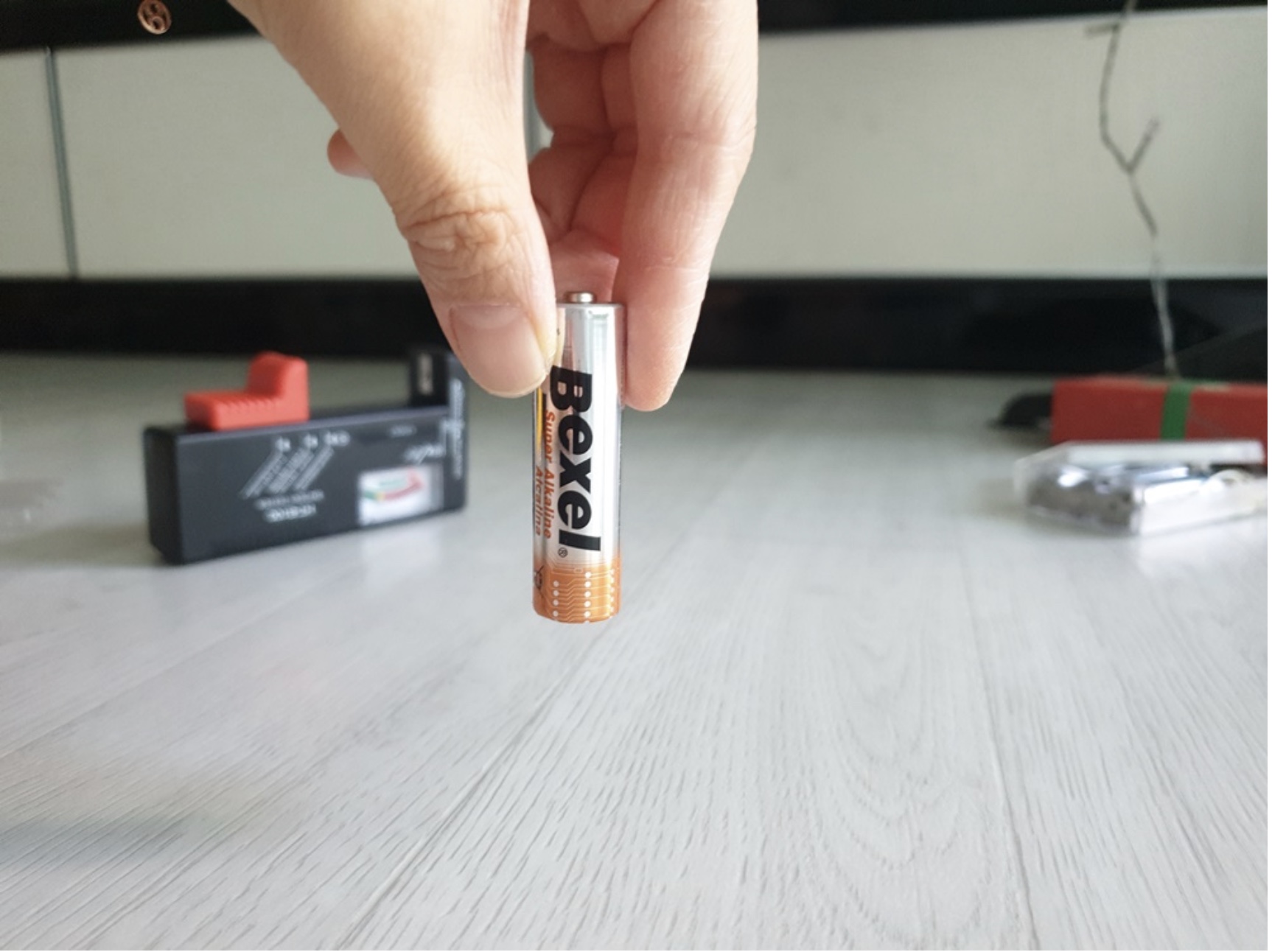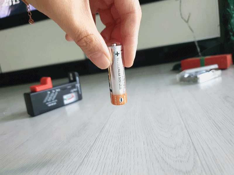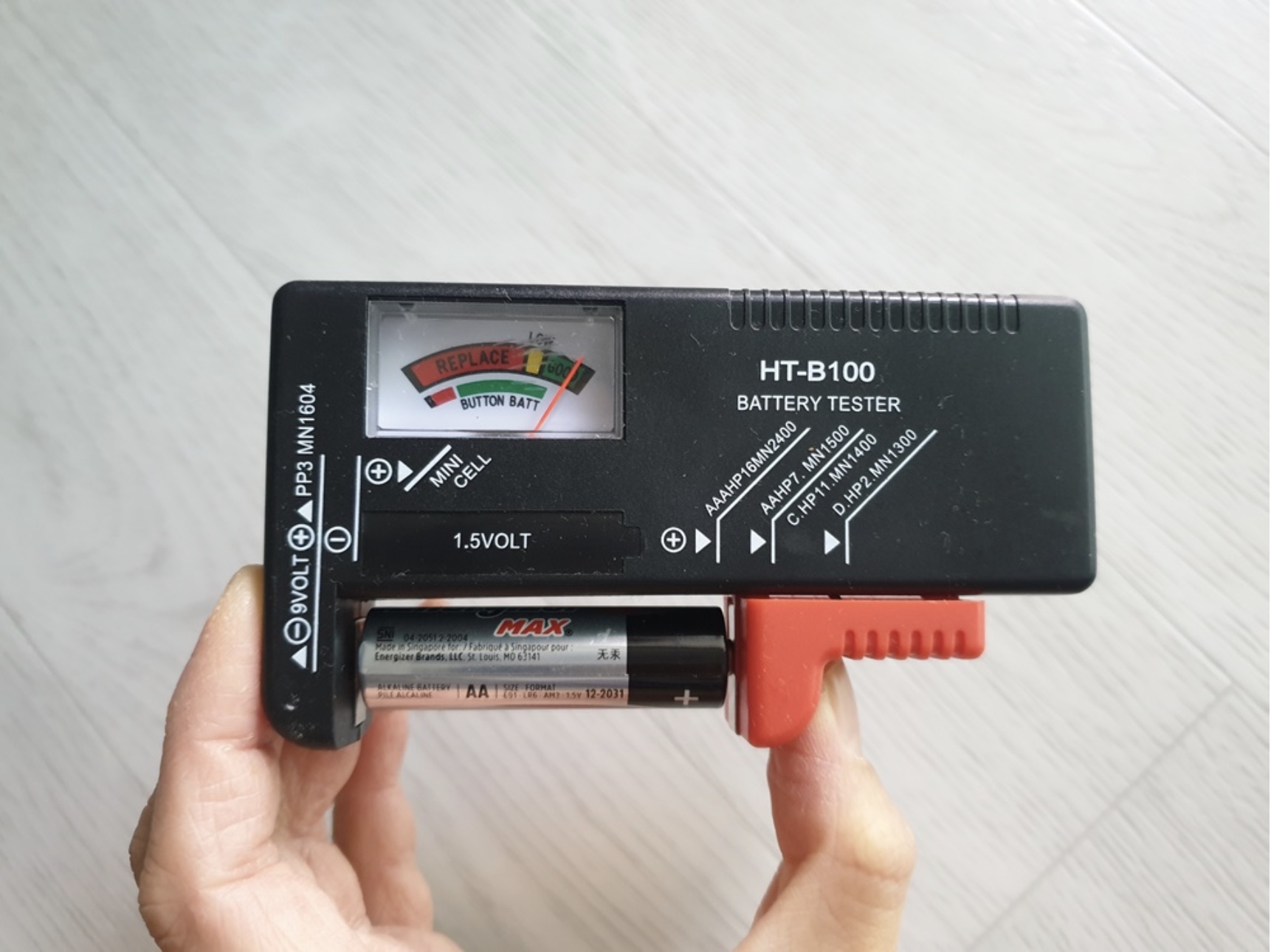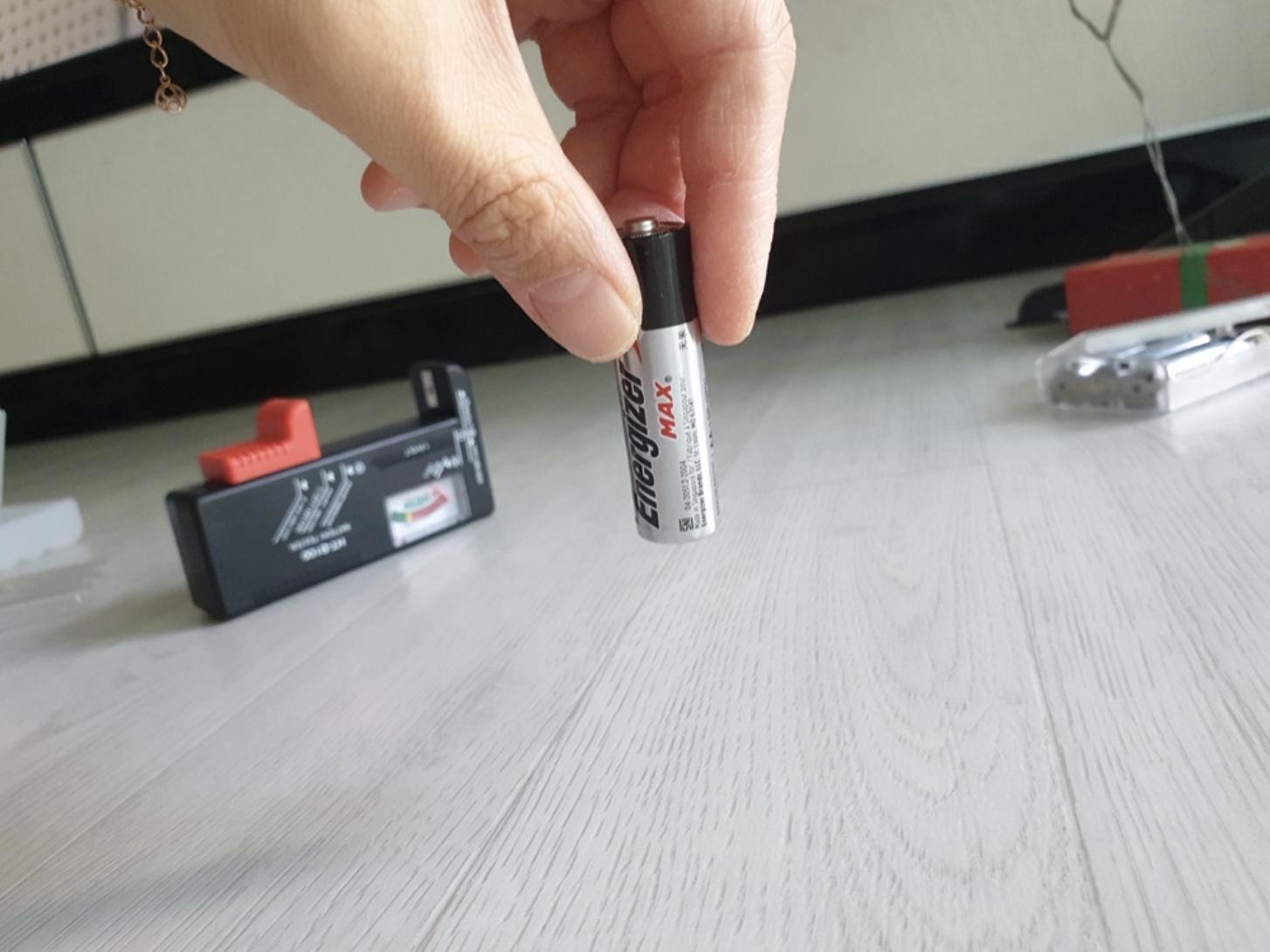 그럼 아까 묵직하게 떨어졌던 건전지의 잔량을 테스트해 볼게요