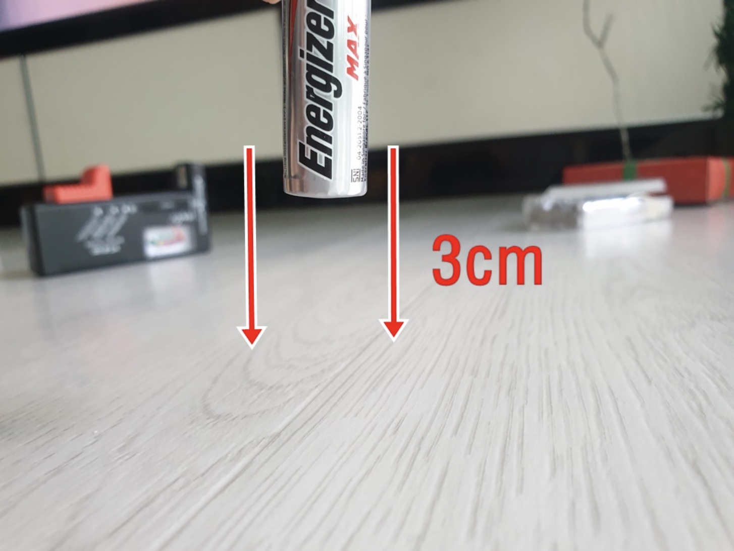 그럼 이번엔 다른 건전지를 떨어뜨려볼게요