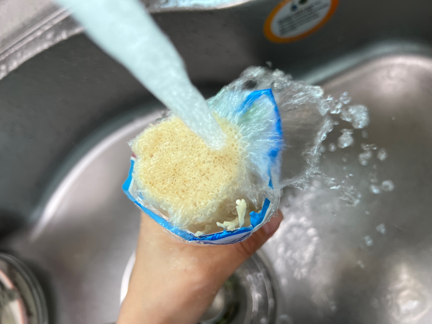 이렇게 씻으면 주변에 팽이버섯 부스러기가 떨어지게 되어 지저분해지지요