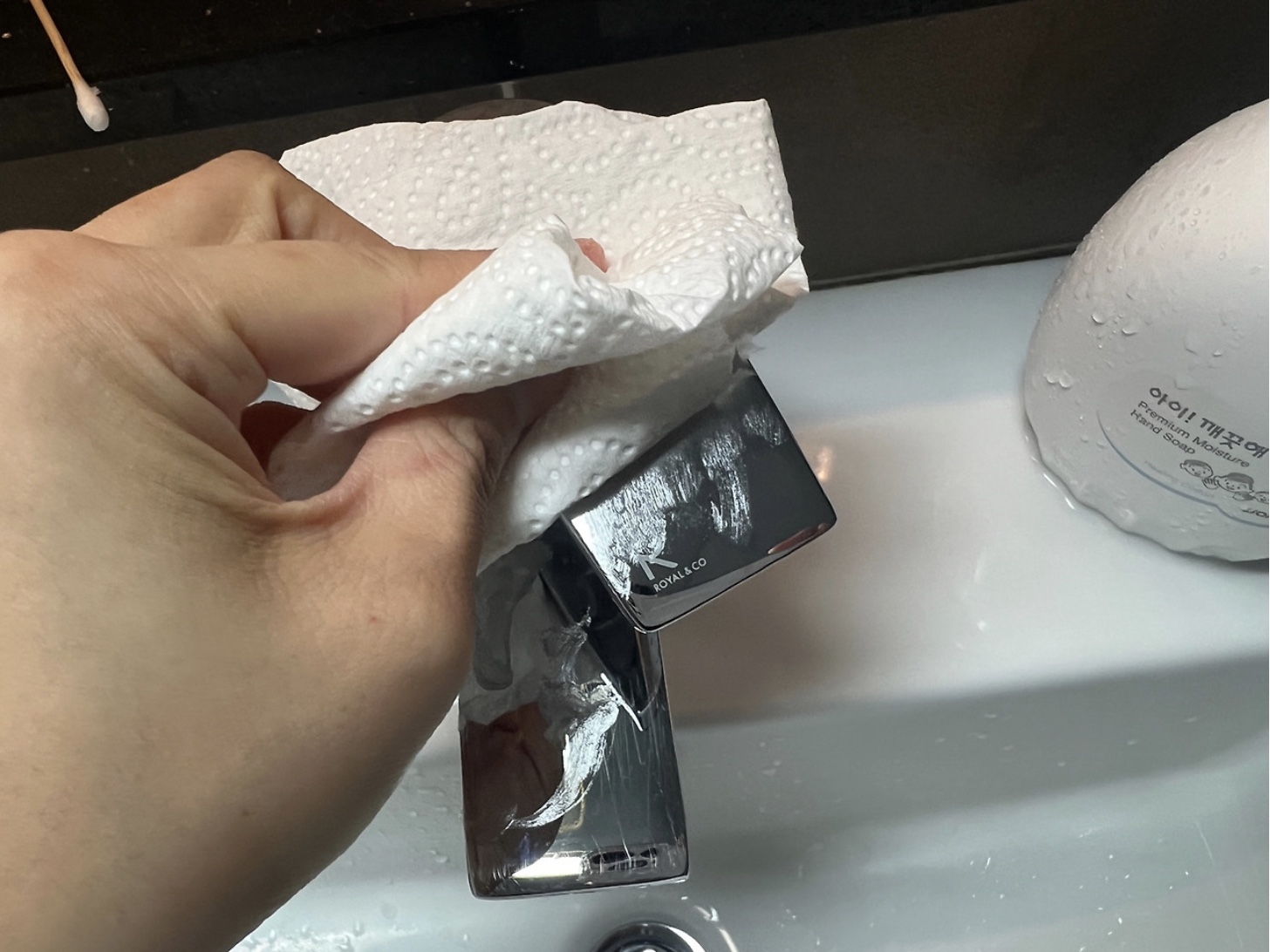 역시 바세린을 발라주기 전에 수전을 깨끗하게 닦아주고