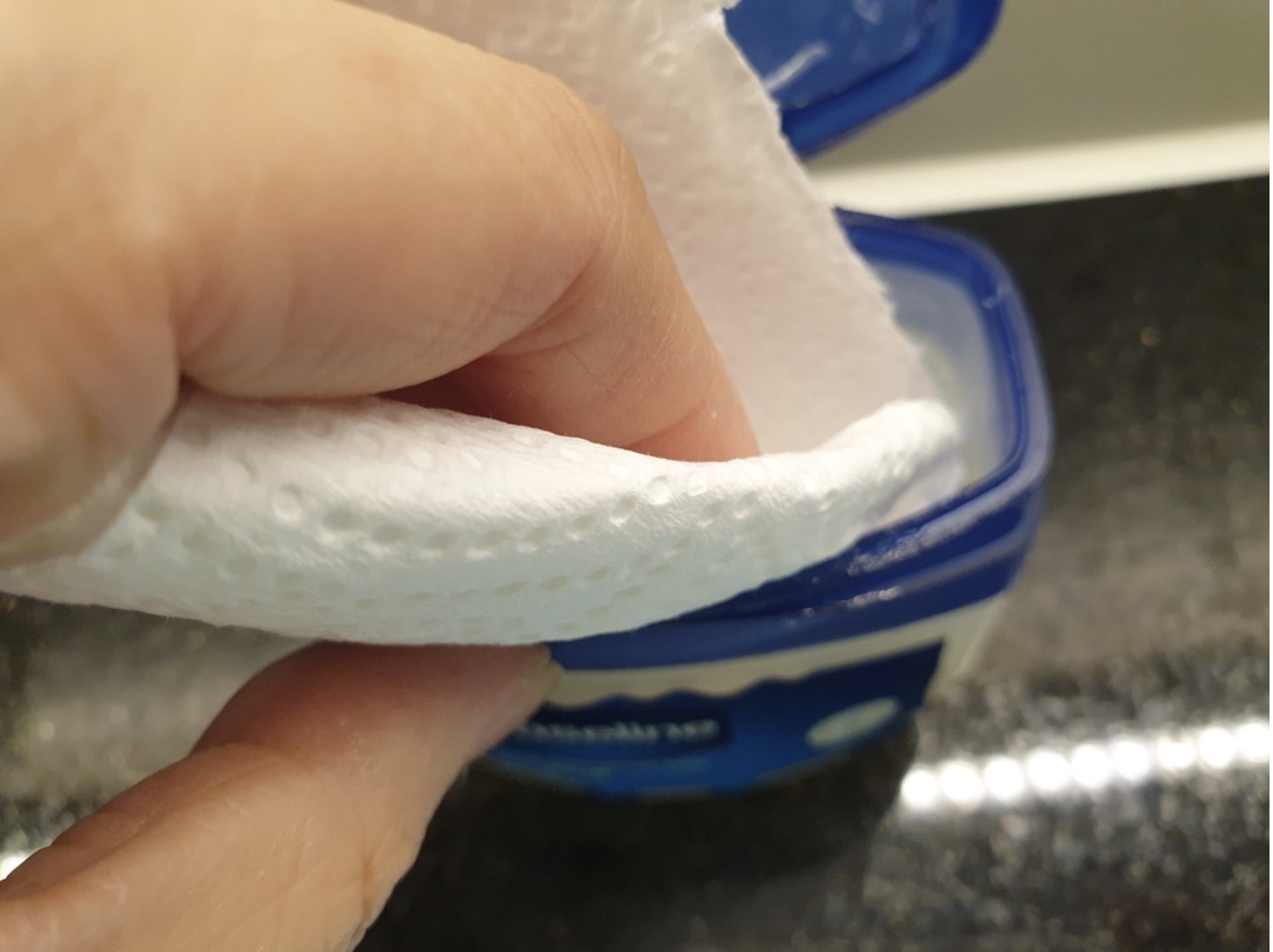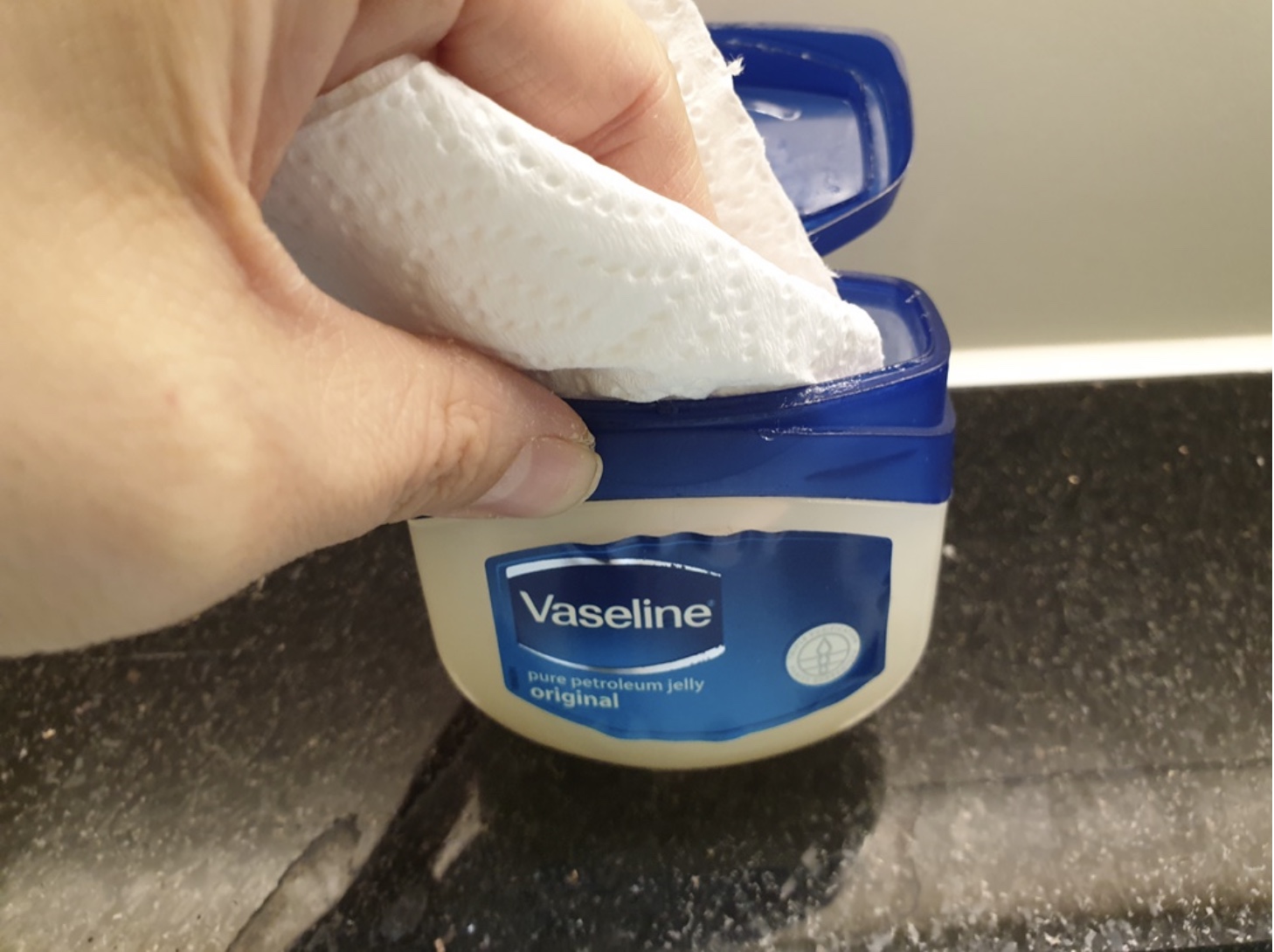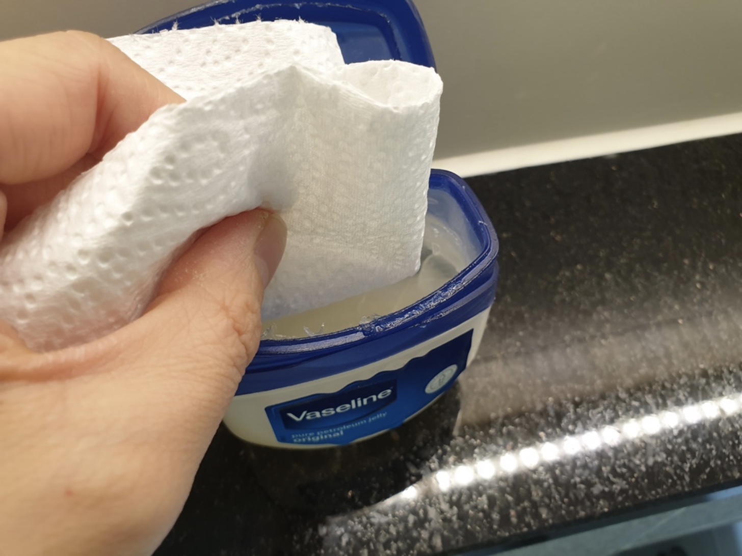 마른천이나 키친타월에 바세린을 발라줍니다