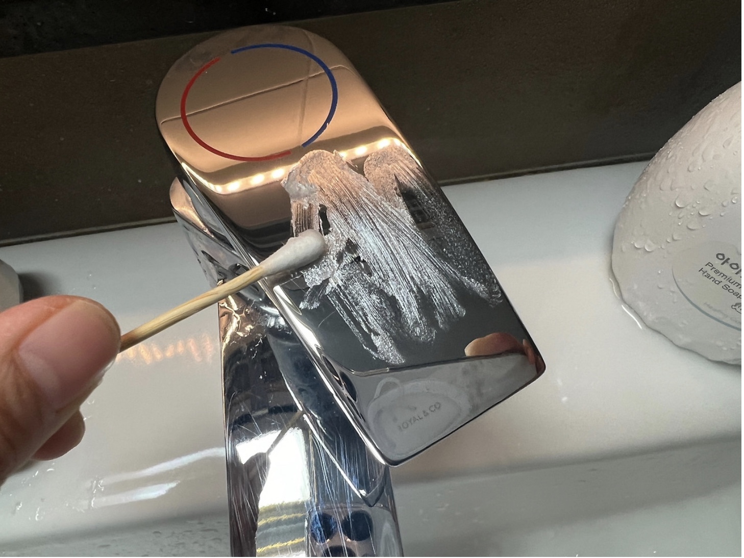 면봉에 바세린을 발라 수전에 골고루 발라줍니다