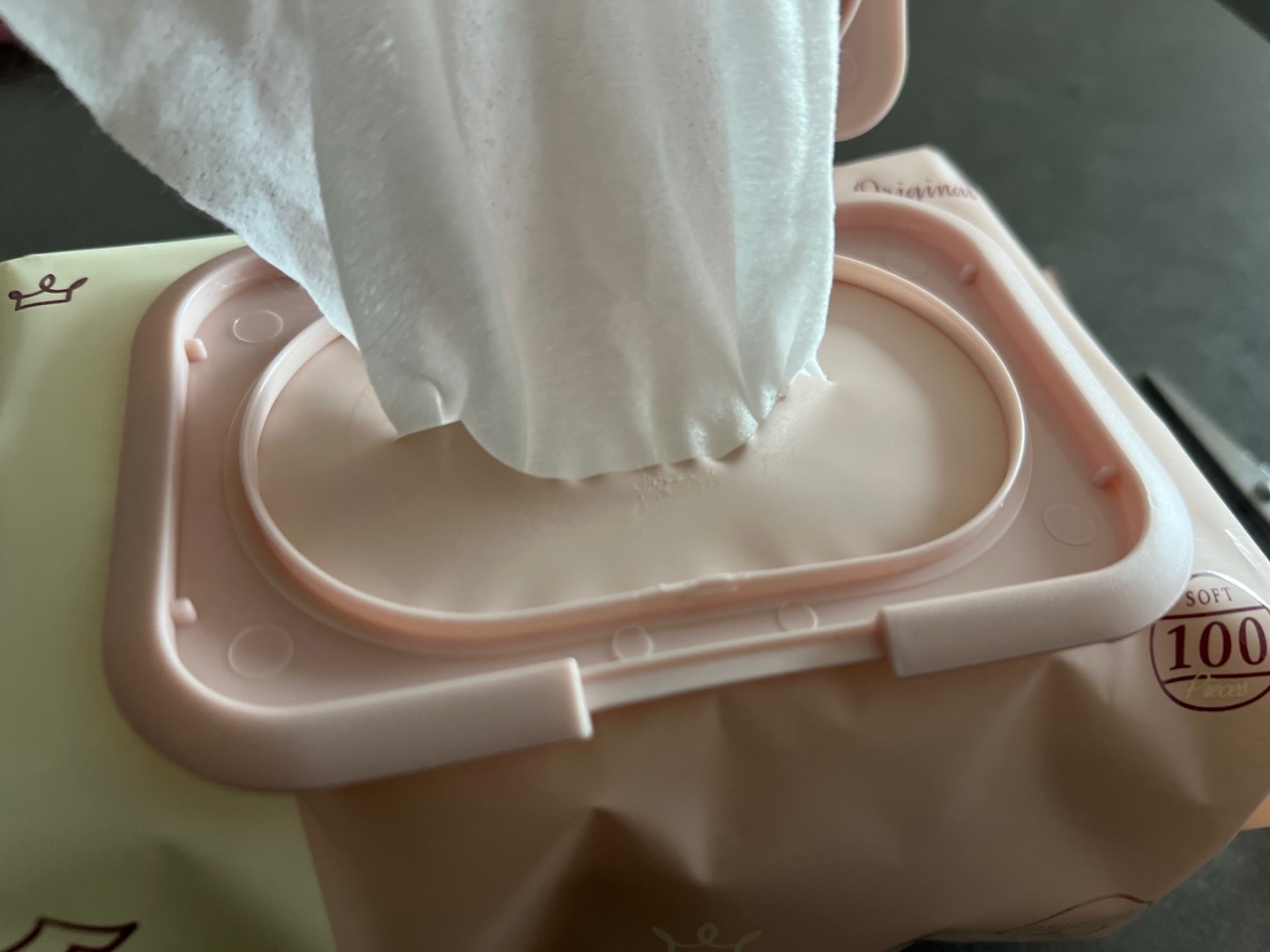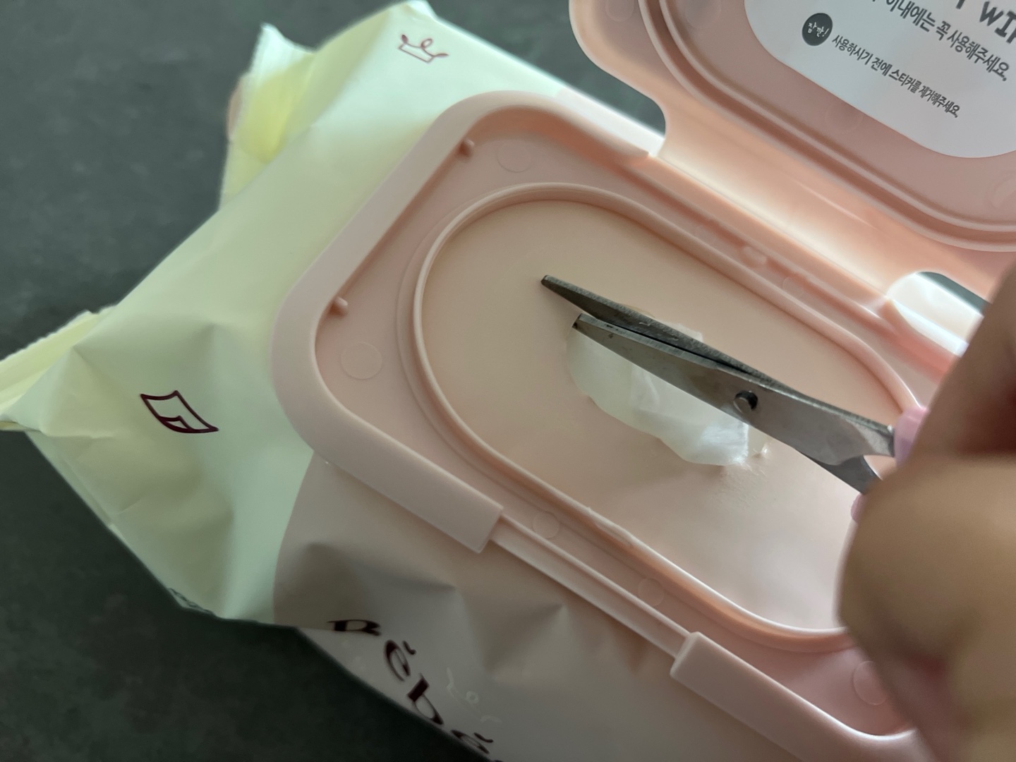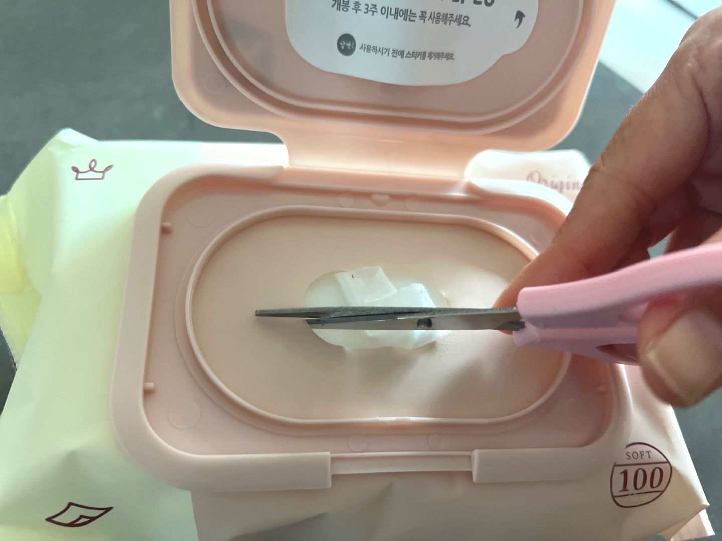 이렇게 가위로 잘라준 다음 물티슈를 꺼내보면