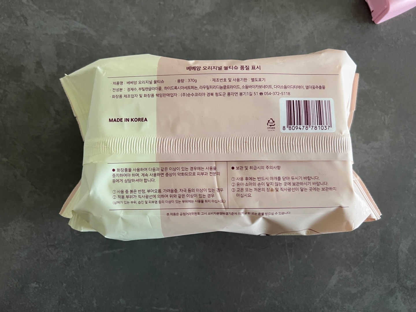 이건 물티슈를 개봉하기 전인 경우에 해당되는 것이고요