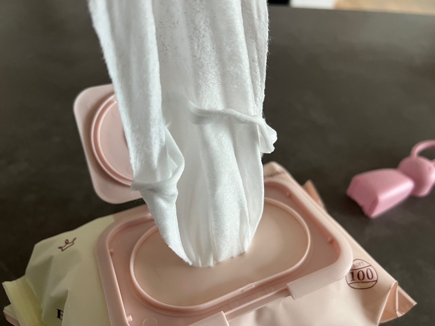 이제 이렇게 꺼냈다가 딸려 나온 물티슈