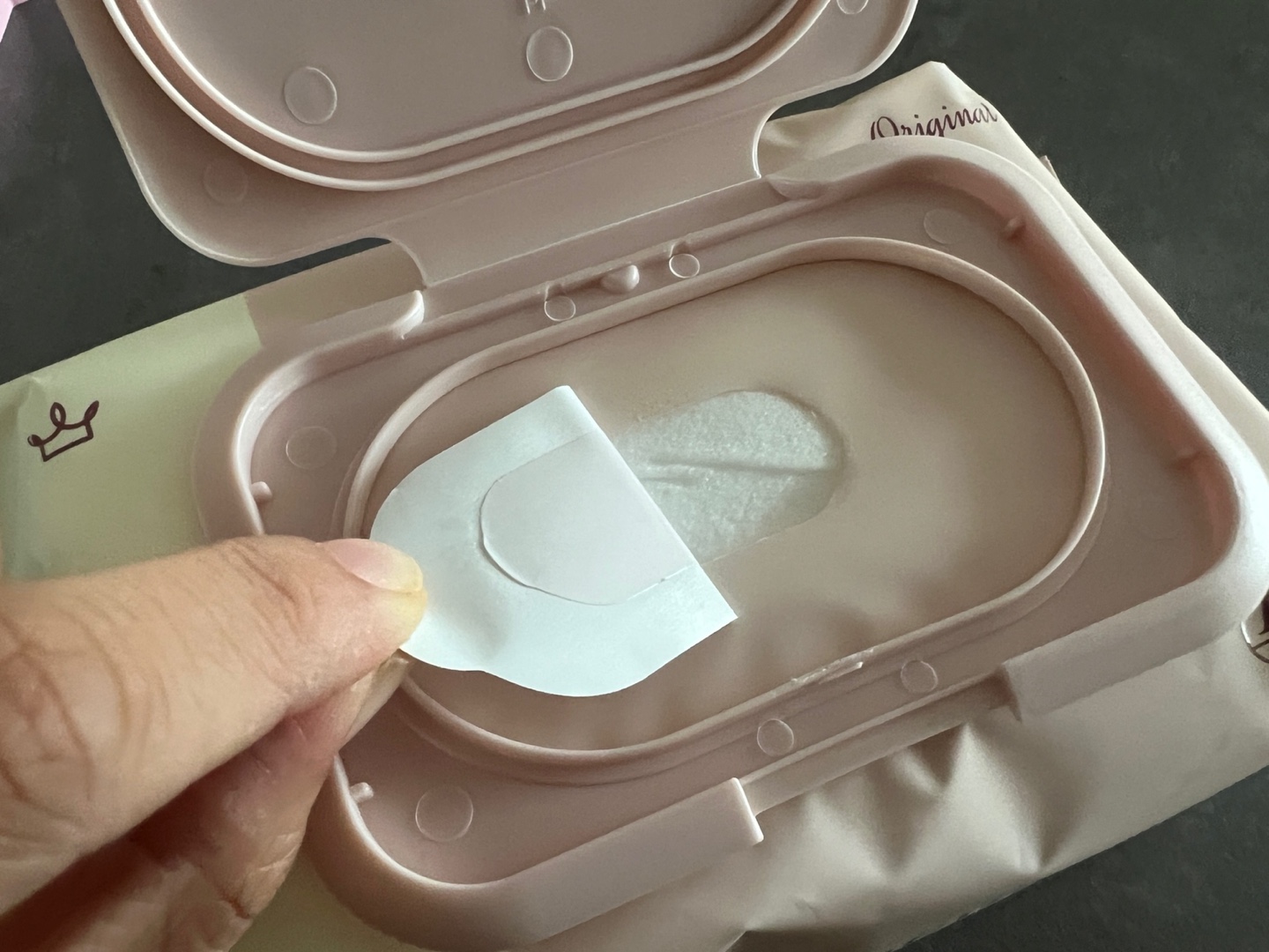 그럼 물티슈를 사용하려면 안에 붙어 있는 스티커를 떼어 주어야 하는데요