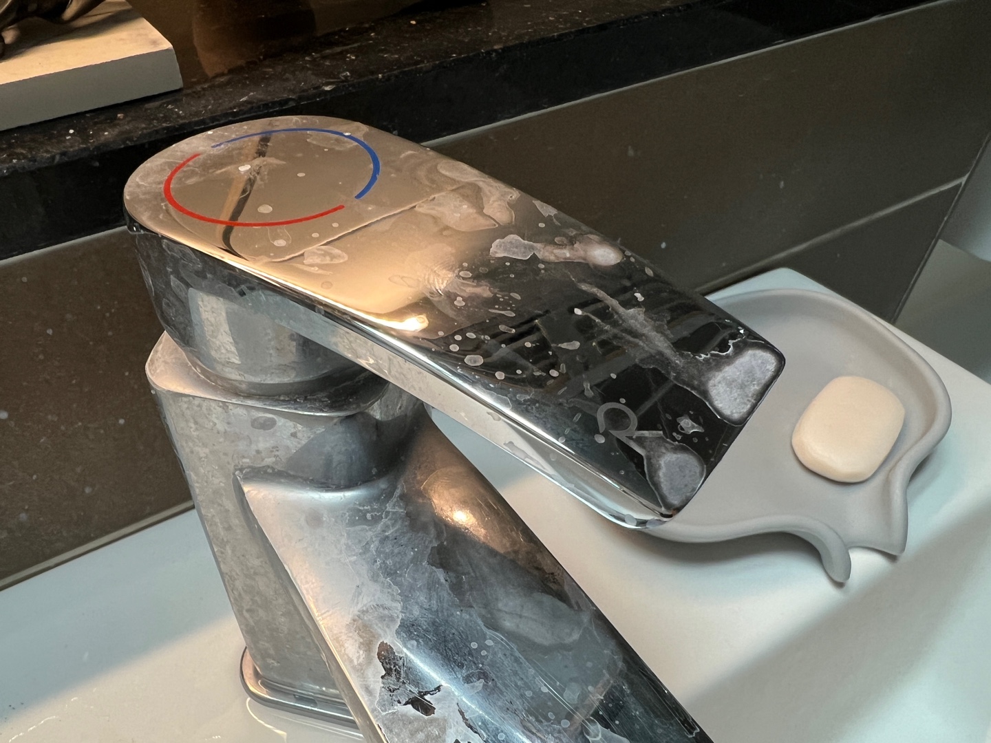화장실 수전은 정말 순식간에 이모양이 되기 쉽지요.