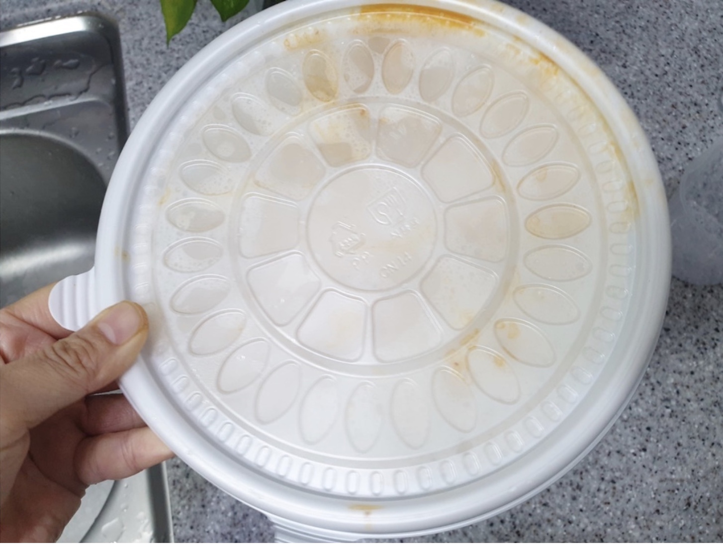 고추기름 범벅인 배달용기! 이것 뿌리니 새하얘졌어요~